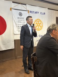 10月4日 髙倉誠二会友、武久会友の卓話がありました。膳所ガバナーエレクト、草野会友、小ケ内会友が来訪され、来年度のことを話されました。