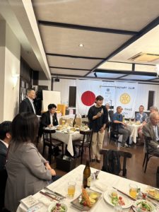 7月19日 ガバナー補佐と共に玖珠クラブが来訪。笠原幹事とローターアクトの例会に参加しました。会長の所信発表でした。