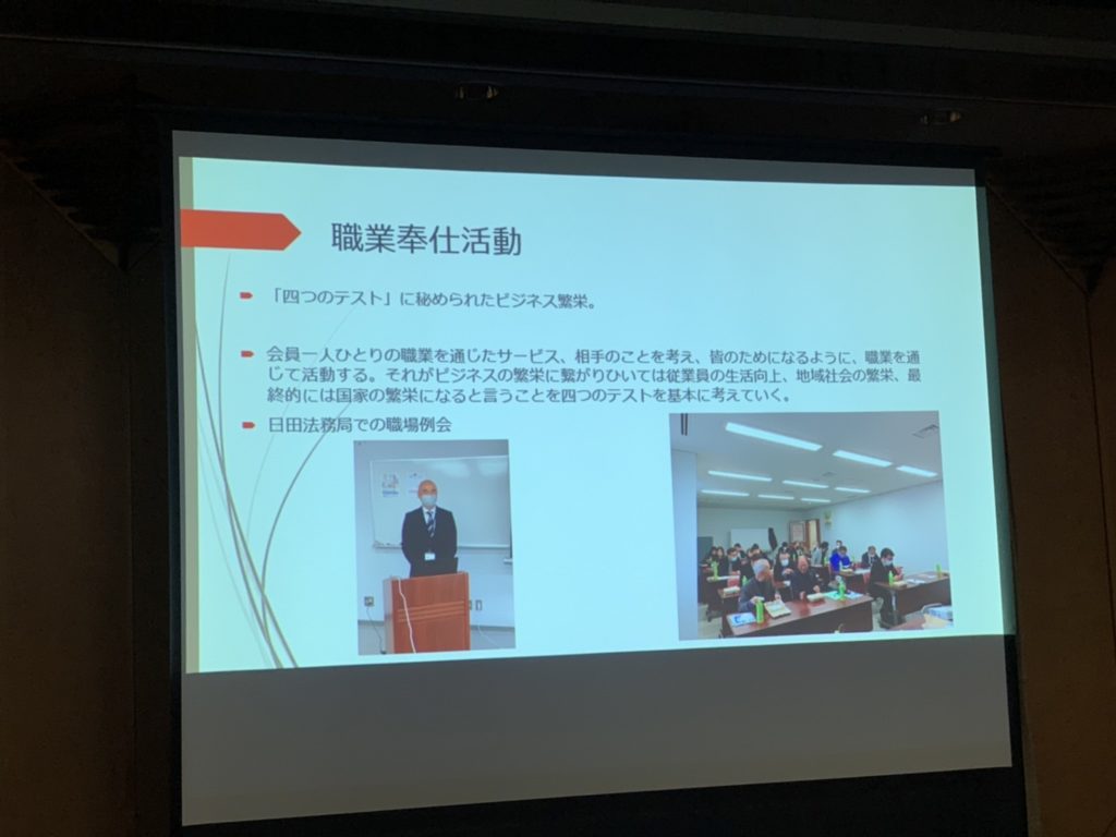 会長の時間では、会友の会社を訪問した動画や大原神社を歩いた動画、その他、「おしゃれ」に焦点をあてた話(ポケットチーフ)など、多岐にわたるものでした。